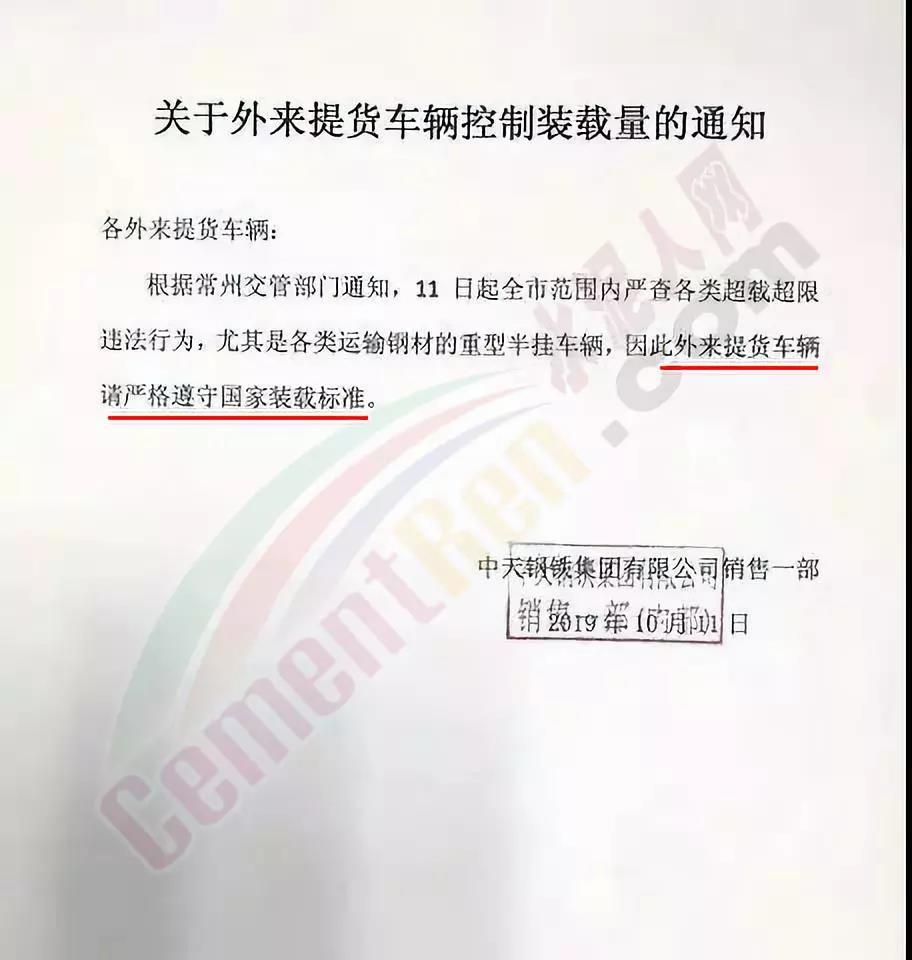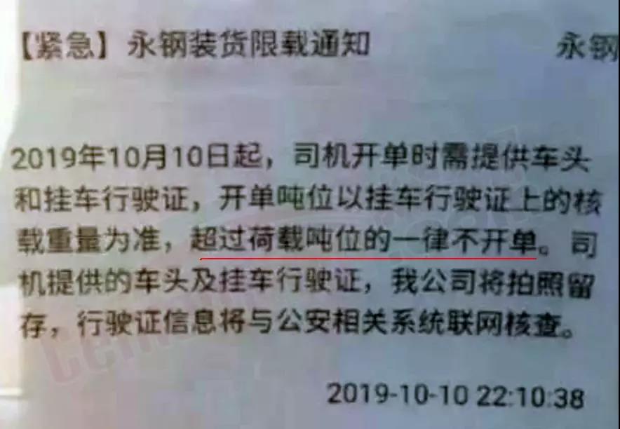 各企業(yè)發(fā)布限載通知常州市武進(jìn)鋼材市場:即日起,所有來我市場裝貨車輛,嚴(yán)格執(zhí)行國家相關(guān)轉(zhuǎn)載標(biāo)準(zhǔn),不得超載!江蘇永鋼:10日晚起,卡車裝貨不能超載,嚴(yán)格按照國家裝載標(biāo)準(zhǔn),目前在裝貨車輛,重新調(diào)整裝貨噸位,已經(jīng)裝好未離廠的,有超噸位的,進(jìn)行減載,請大家引起重視。