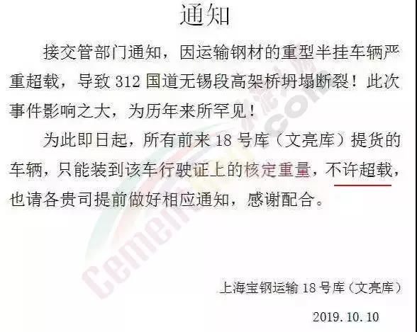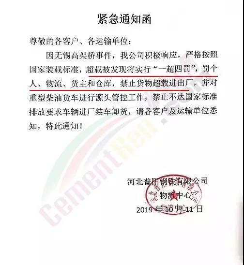 同時(shí),相關(guān)物流運(yùn)輸企業(yè)及部分個(gè)體運(yùn)輸人員通知業(yè)主和客戶由于無錫“特殊事件”即日起運(yùn)費(fèi)上調(diào)30元/噸,每車限拉35噸。