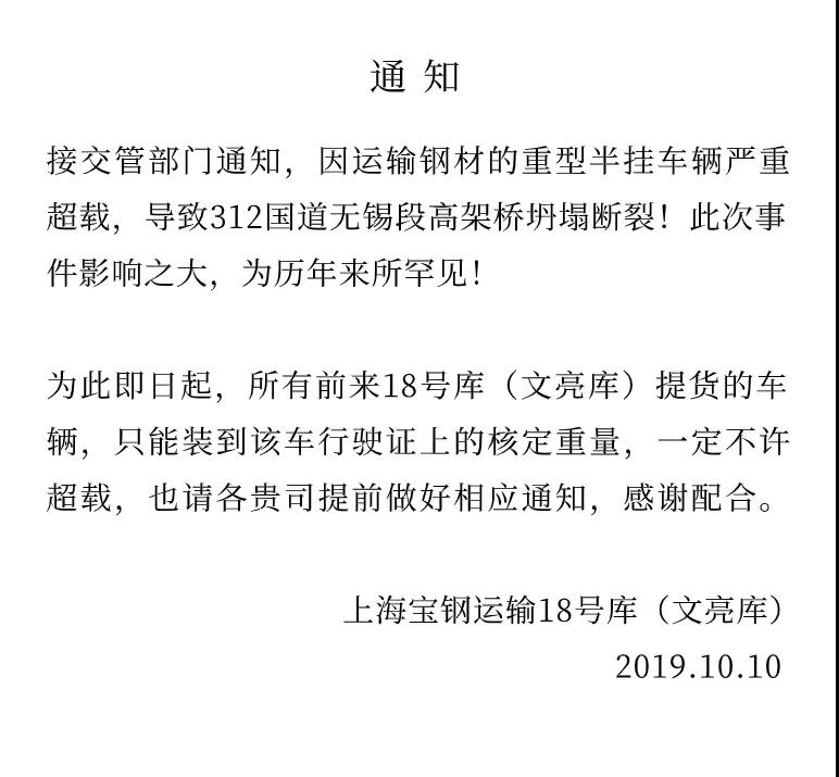 10月10日事件發(fā)生后,一經(jīng)報道瞬間引起軒然大波,江浙滬等鄰近地區(qū)的運輸公司和配貨站紛紛接到交管部門通知,要求嚴格按照行駛證上的核定重量裝載貨物。