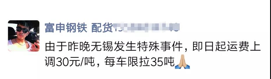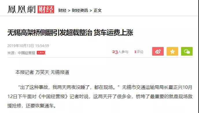鳳凰網(wǎng):無錫事故發(fā)生后,貨車運費上漲▼