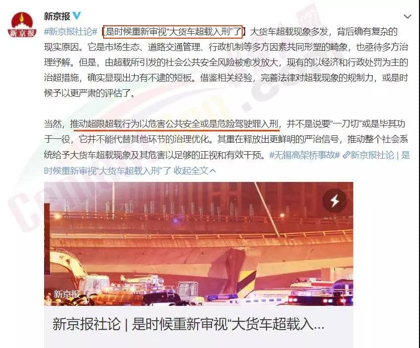 事故發(fā)生后,許多網(wǎng)友也紛紛表態(tài)支持對“超載”入刑,進一步加大對超載在法律層面的懲治力度。