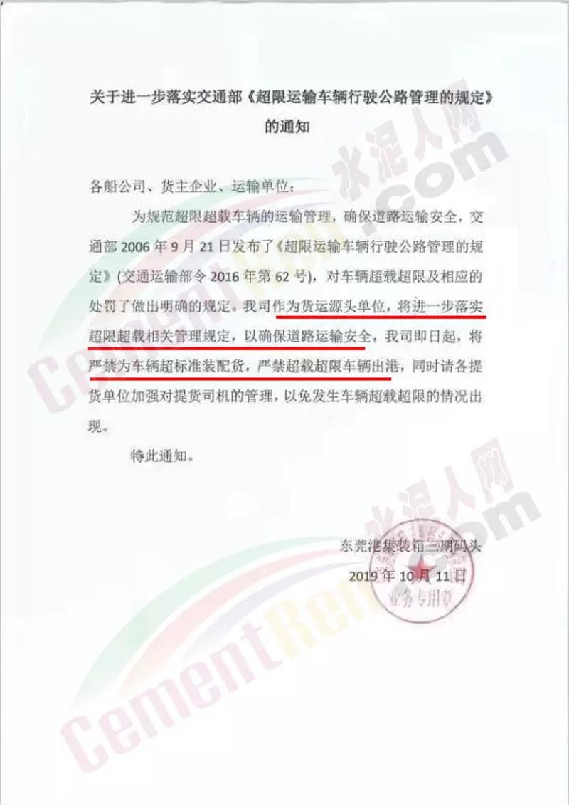 東莞港集裝箱三期碼頭發(fā)布《關(guān)于進(jìn)一步落實交通部<超限運輸車輛行駛公路管理的規(guī)定>的通知》稱,作為貨運源頭單位,將進(jìn)一步落實超限超載相關(guān)規(guī)定,以確保道路運輸安全。即日起,將嚴(yán)禁為車輛超標(biāo)準(zhǔn)裝配貨,嚴(yán)禁超載超限車輛出港。