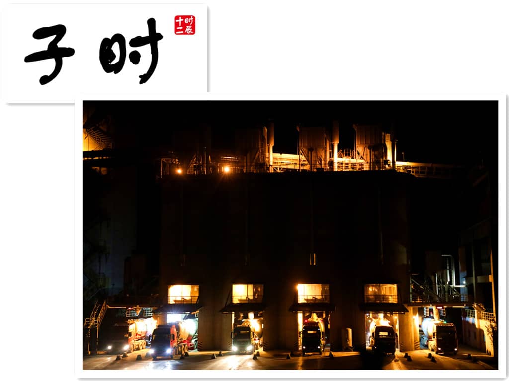 子時(shí)(23:00—1:00)“子時(shí)夜半動(dòng)人愁”。公司發(fā)運(yùn)廣場的散裝區(qū)依然是一副“車水馬龍”的盛況。