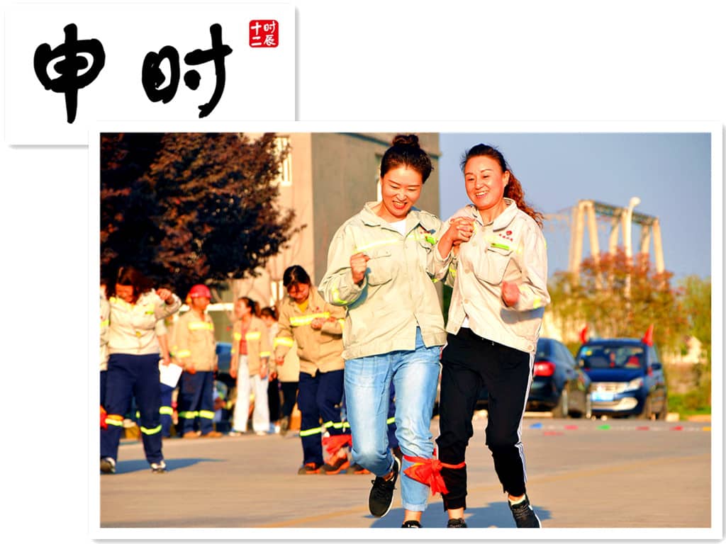 申時(shí)(15:00—17:00)辦公樓 前舉辦的職工趣味活動(dòng)熱鬧非凡,每個(gè)職工的臉上無不洋溢著燦爛的笑容。