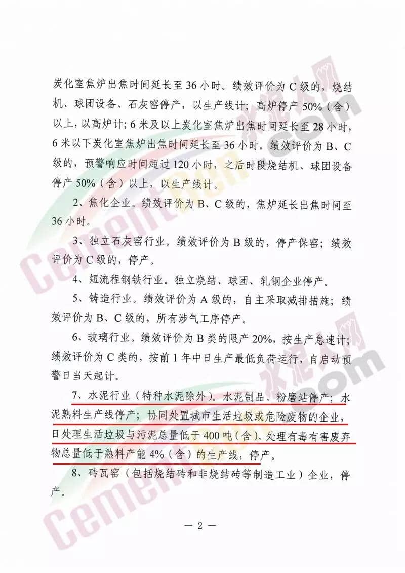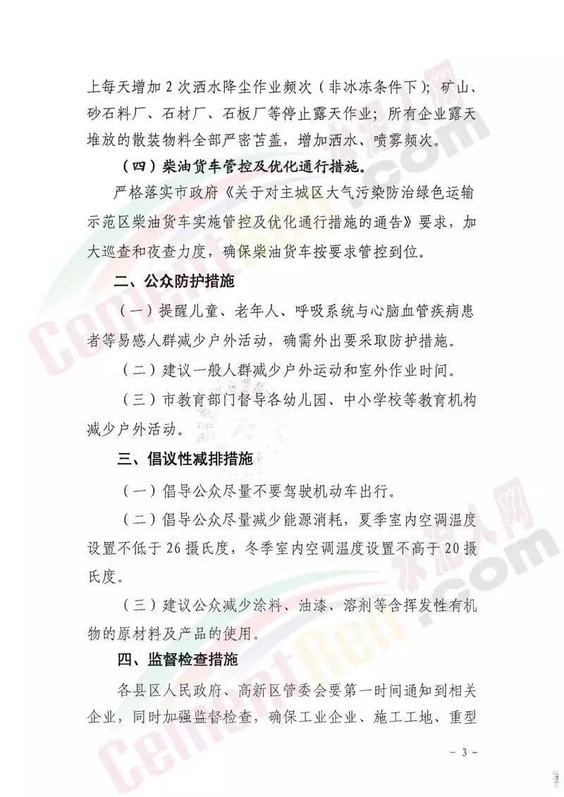 據(jù)水泥人網(wǎng)了解,15日唐山市人民政府剛剛發(fā)布了特提文件《關于啟動重污染天氣II級應急響應的通知》要求自10月15日20時起,全市啟動重污染天氣II級應急響應。要求工業(yè)源停限產(chǎn)措施方面要求水泥行業(yè)(特種水泥除外),水泥制品、粉磨站停產(chǎn);水泥熟料生產(chǎn)線停產(chǎn);協(xié)同處置城市生活垃圾或危險廢物的企業(yè),日處理生活垃圾與污泥總量低于400噸(含)、處理有毒有害廢棄物總量低于熟料產(chǎn)能4%(含)的生產(chǎn)線,停產(chǎn)。揚塵源控制措施方面,要求礦山、沙石料廠、石材廠、石板廠等停止露天作業(yè);施工工地停止土石方作業(yè)、建筑拆除、噴涂粉刷、護坡噴漿、混凝土攪拌等。