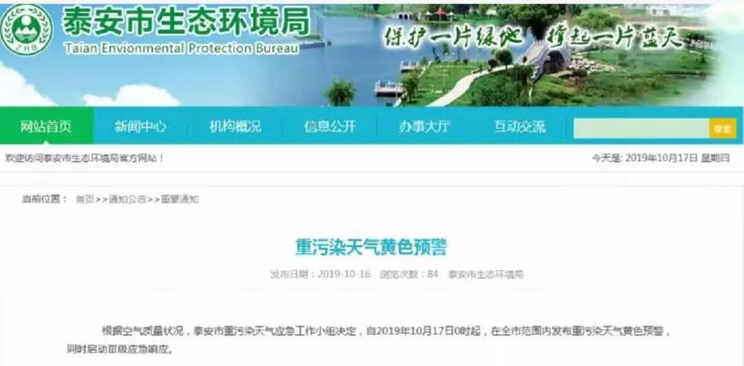 山東省泰安市發(fā)布重污染天氣黃色預警