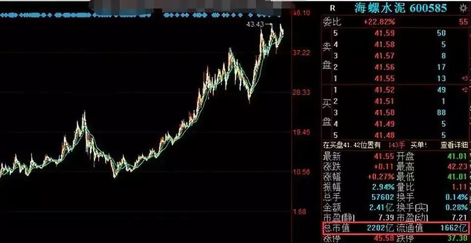 海螺水泥自2002年3月20日上市至今,復(fù)權(quán)后的股價達到了歷史新高。A股其主板市值也從2002年3月20日的73.16億增長到了2019年9月30日的2202億,17年的時間主板市值增長了30倍。如果您在2002年3月20日買入10萬元的海螺水泥股票,現(xiàn)在的價值已經(jīng)是300萬元,年收益率非常驚人!