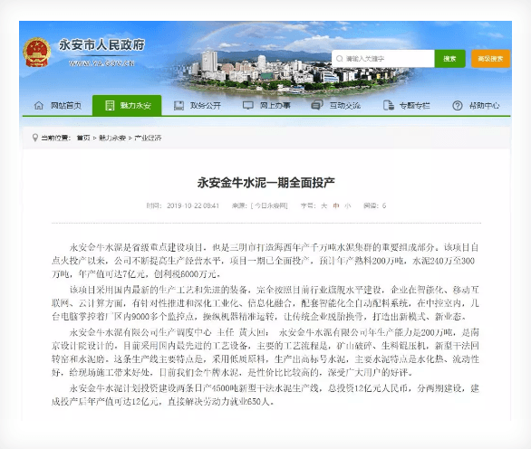 日前,永安市人民政府發(fā)布永安金牛水泥一期全面投產(chǎn)的消息。消息稱,永安金牛水泥是省級(jí)重點(diǎn)建設(shè)項(xiàng)目,也是三明市打造海西年產(chǎn)千萬(wàn)噸水泥集群的重要組成部分。該項(xiàng)目自點(diǎn)火投產(chǎn)以來(lái),公司不斷提高生產(chǎn)經(jīng)營(yíng)水平,項(xiàng)目一期已全面投產(chǎn),預(yù)計(jì)年產(chǎn)熟料200萬(wàn)噸,水泥240萬(wàn)至300萬(wàn)噸,年產(chǎn)值可達(dá)7億元,創(chuàng)利稅6000萬(wàn)元。