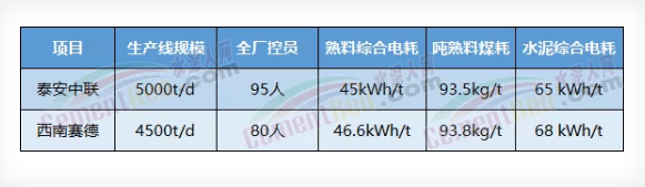 對(duì)比世界低能耗示范線生產(chǎn)線泰安中聯(lián)日產(chǎn)5000噸新型干法水泥熟料生產(chǎn)線,其智能化程度和能耗指標(biāo)有相似之處。