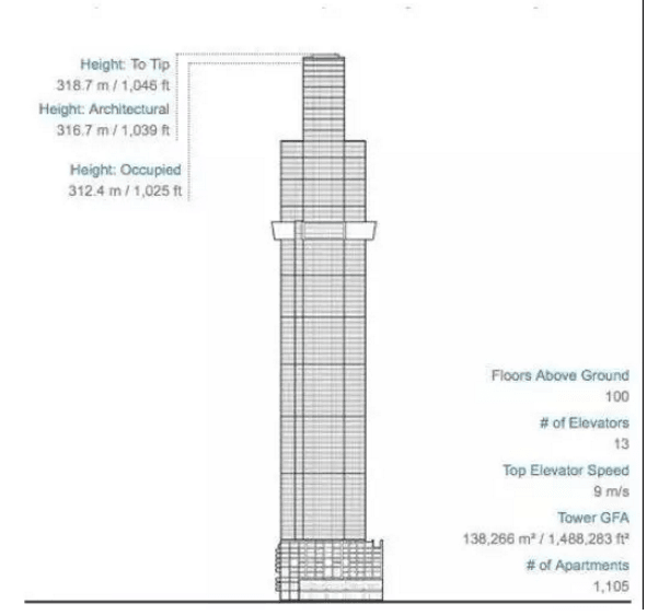 從下圖的Australia 108圖紙,大家可看到,這棟樓有100多層,高318米。向這樣高的大樓內(nèi)泵送混凝土,需要一直加壓。