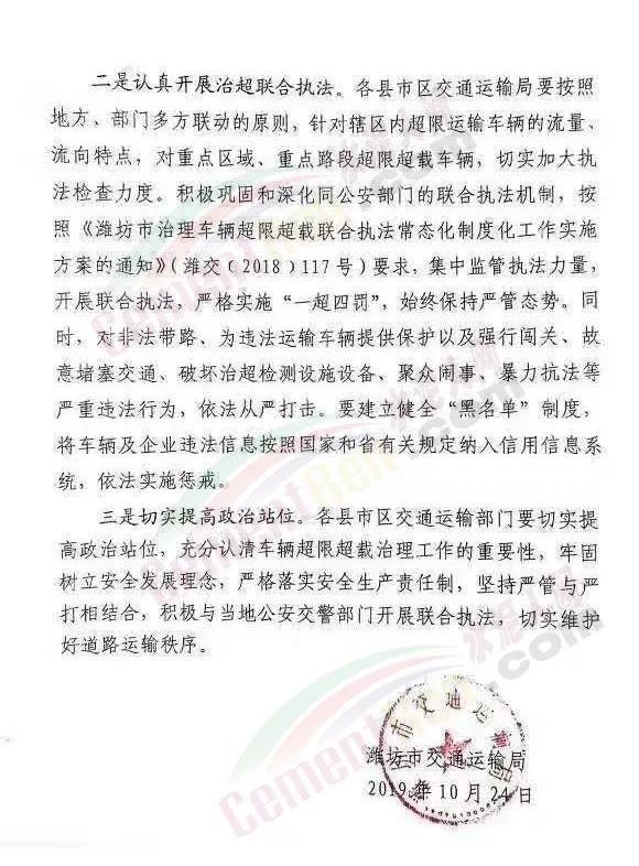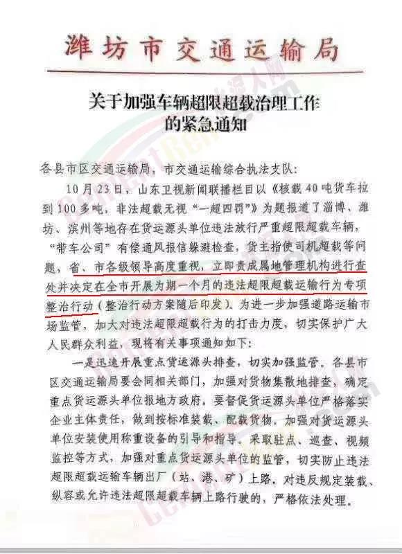 為進一步加強道路運輸市場監(jiān)管,加大對違法超限超載行為的打擊力度,切實保護廣大人民群眾利益,并將相關(guān)事項通知如下:一、迅速開展重點貨運源頭排查,切實加強監(jiān)管各縣市區(qū)交通運輸局要會同相關(guān)部門,加強對貨物集散地排查,確定重點貨運源頭單位報地方政府,要督促貨運源頭單位嚴格落實企業(yè)主體責任,做到按標準裝載、配載貨物。加強對貨運源頭單位安裝使用稱重設(shè)備和引導(dǎo)和指導(dǎo)。采取駐點、巡查、視頻、監(jiān)控等方式,加強對重點貨運源頭單位的監(jiān)管,切實防止違法超限超載運輸車輛出廠(站、港、礦)上路。對違反規(guī)定裝載、縱容或允許違法超限超載車輛上路行駛的,嚴格依法處理。二、認真開展治超聯(lián)合執(zhí)法各縣市區(qū)交通運輸局要按照地方、部門多方聯(lián)動的原則,針對轄區(qū)內(nèi)超限運輸車輛的流量,流向特別,對重點區(qū)域 、重點路段超限超載車輛,切實加大執(zhí)法檢查力度。積極鞏固和深化同公安部門的聯(lián)合執(zhí)法機制,按照《濰坊市治理車輛超限超載聯(lián)合執(zhí)法常態(tài)化制度化工作實施方案的通知》(濰交【2018】117號)要求,集中監(jiān)管執(zhí)法力量,開展聯(lián)合執(zhí)法,嚴格實施“一超四罰”,始終保持嚴管態(tài)勢。同時,對非法帶路,為違法運輸車輛提供保護以及強行闖關(guān)、故意堵塞交通、破壞治超檢測設(shè)施設(shè)備、聚眾門事、暴力抗法等嚴重違法行為,依法從嚴打擊。要建立健全“黑名單”制度,將車輛及企業(yè)違法信息按照國家和省有關(guān)規(guī)定納入信用信息系統(tǒng),依法實施懲戒。三、切實提高政治站位各縣市區(qū)交通運輸部門要切實提高政治站位,充分認清車國內(nèi)超限超載治理工作的重要性,牢固樹立安全發(fā)展理念,嚴格落實安全生產(chǎn)責任制,堅持嚴管與嚴打相結(jié)合 ,積極與當?shù)毓步痪块T開展聯(lián)合執(zhí)法,切實維護好道路運輸秩序。通知原文如下: