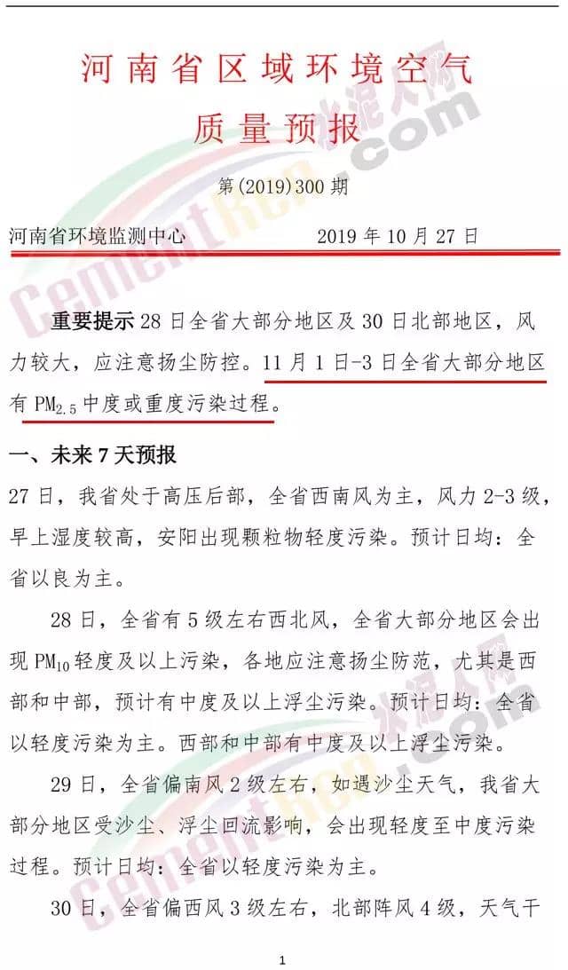 河南省《河南省區(qū)域環(huán)境空氣質(zhì)量預(yù)報(bào)》第(2019)300期文件稱(chēng),11月1日-3日全省大部分地區(qū)有PM2.5中度或重度污染過(guò)程。建議安陽(yáng)、鶴壁、新鄉(xiāng)、焦作、濮陽(yáng)、鄭州、開(kāi)封、洛陽(yáng)、濟(jì)源、許昌、平頂山、商丘、周口等地加強(qiáng)本地區(qū)分析研判 ,及時(shí)啟動(dòng)相應(yīng)級(jí)別預(yù)警。