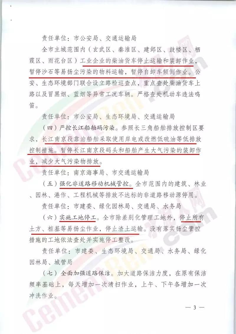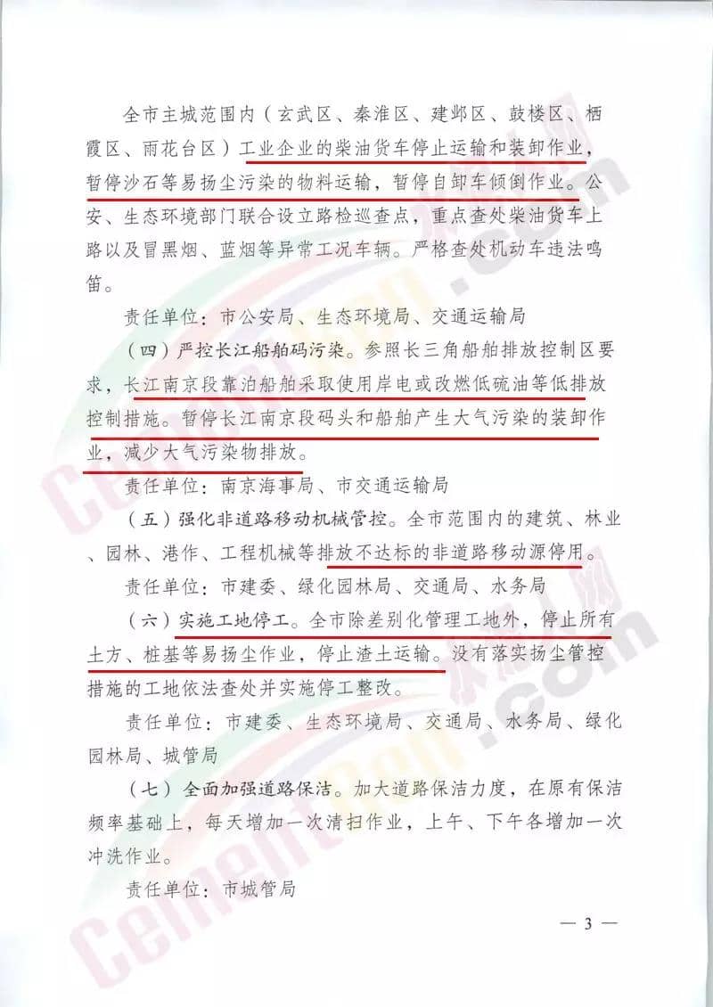 據(jù)水泥人網(wǎng)了解,日前南京市環(huán)境保護部門連發(fā)兩文要求列入全市秋冬應(yīng)急管控清單的1560家重點工業(yè)企業(yè)按照重污染天氣應(yīng)急預(yù)案橙色預(yù)警級別實施停限產(chǎn)。