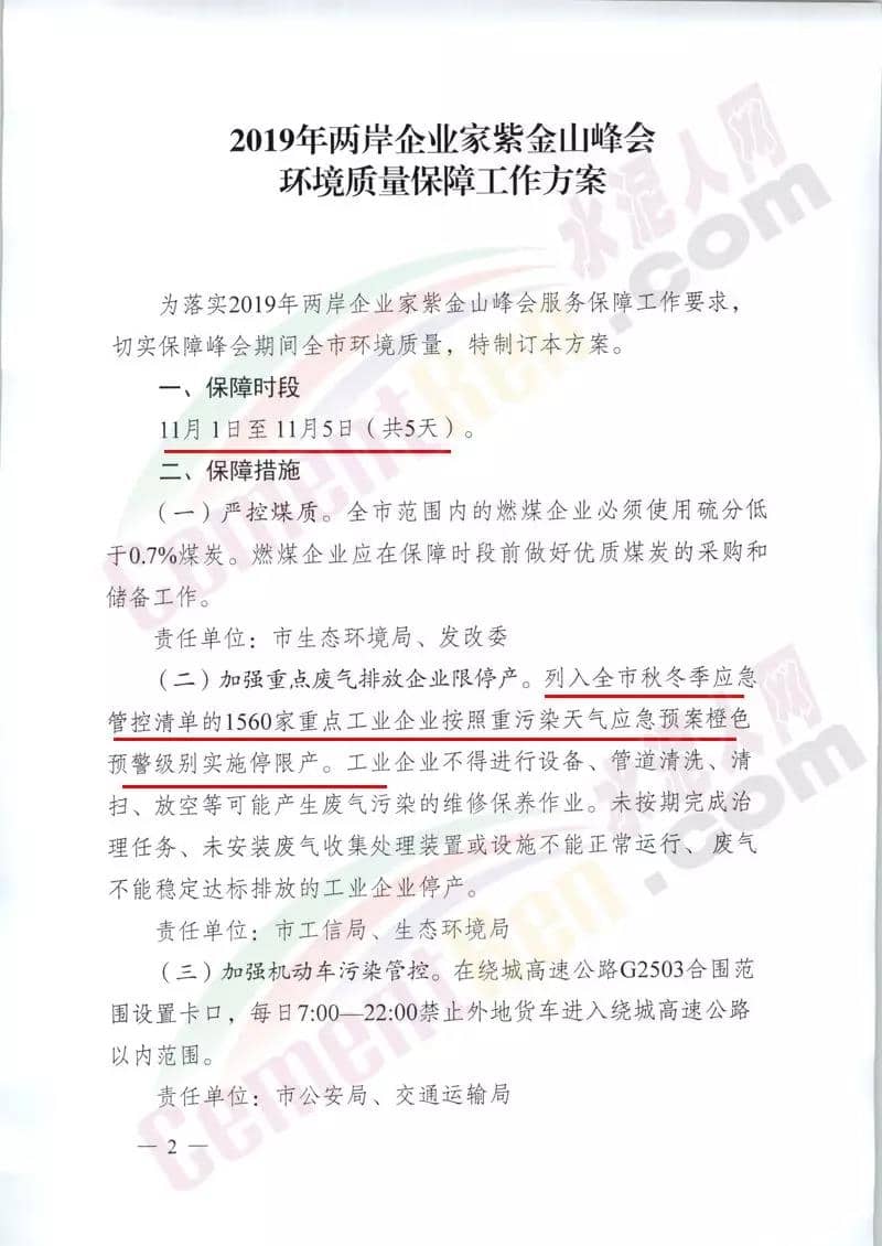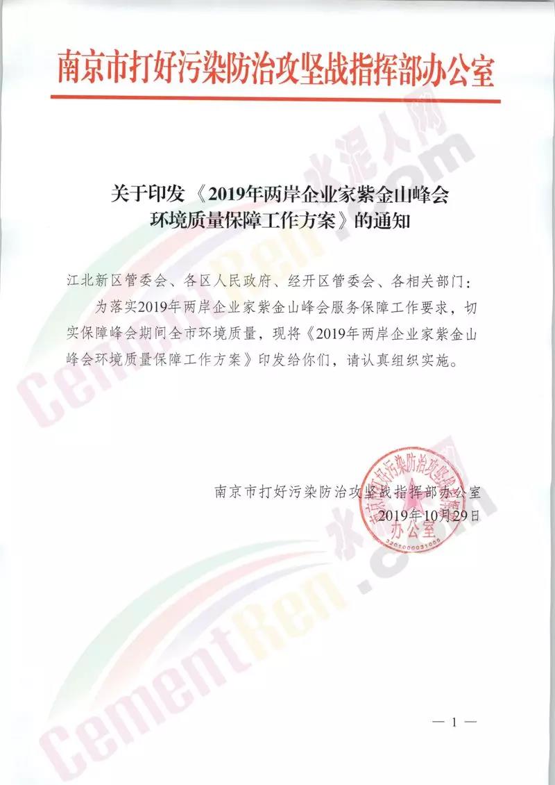 同期,南京市打好污染防治攻堅戰(zhàn)指揮部辦公室發(fā)布《2019年兩岸企業(yè)家紫金山峰分環(huán)境質(zhì)量保障工作方案的通知》保障時段11月1日至11月5日(共5天)。通知原文如下: