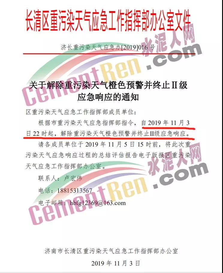 同日,濟南市長清區(qū)重污染天氣應(yīng)急工作指揮部辦公室發(fā)布《關(guān)于解除重污染天氣橙色預(yù)警并終止II級應(yīng)急響應(yīng)的通知》稱,根據(jù)濟南市重污染天氣應(yīng)急指軍部指令,自2019年11月3日22時起,解除重污染天氣橙色預(yù)警并終止II級應(yīng)急響應(yīng)。
