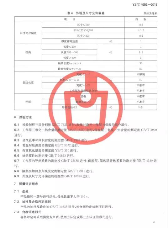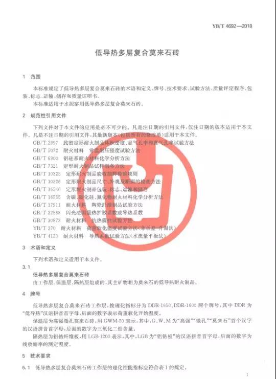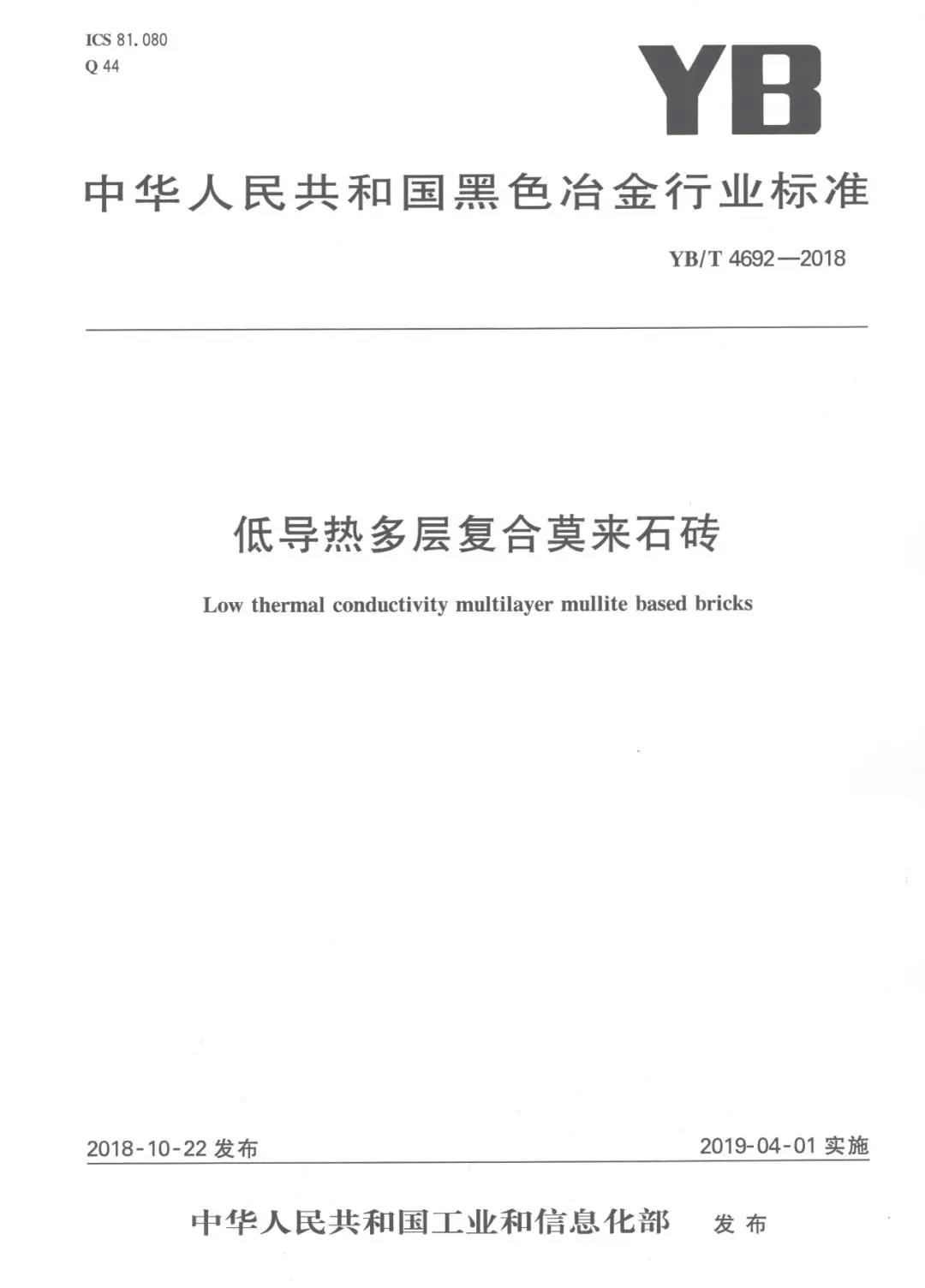 據(jù)了解,2019年10月14日是第50屆世界標(biāo)準(zhǔn)日,就在當(dāng)天,由鄭州瑞泰耐火科技有限公司主持起草的《低導(dǎo)熱多層復(fù)合莫來(lái)石磚》“YB/T 4692-2018”國(guó)家行業(yè)標(biāo)準(zhǔn),正式由中華人民共和國(guó)工業(yè)和信息化部發(fā)售紙質(zhì)單行本。