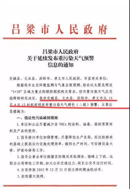 根據(jù)朔州市重污染天氣專(zhuān)家委員會(huì)研判會(huì)商結(jié)果,2019年11月4日-6日,我市市區(qū)受偏南氣流影響,風(fēng)力較小,擴(kuò)散條件較差,市區(qū)空氣質(zhì)量以輕至中度污染為主,短時(shí)可能出現(xiàn)重度污染,11月7日,市區(qū)空氣質(zhì)量以良為主。市重污染天氣應(yīng)急指揮部決定從2019年11月4日0時(shí)-11月6日18時(shí)升級(jí)重污染天氣為橙色預(yù)警,同時(shí)啟動(dòng)Ⅱ級(jí)響應(yīng)?,F(xiàn)將有關(guān)管控措施通知如下: