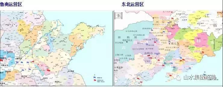 山水集團總部位于山東省濟南市,旗下112家分(子)公司分布在山東、遼寧、內蒙、山西、陜西、河南、河北、吉林、天津、新疆等十省(市、自治區(qū))。根據(jù)集團監(jiān)控、區(qū)域管理的經營管理模式,按照地域分布,集團下設魯東、魯西、魯南、東北、山西、新疆六大運營區(qū)。
