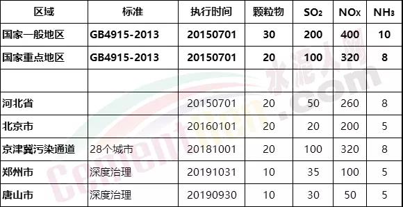 一,超低排放的演化目前,水泥生產(chǎn)的大氣污染物排放國(guó)家標(biāo)準(zhǔn),仍然執(zhí)行GB 4915-2013。標(biāo)準(zhǔn)要求新建企業(yè)自2014年03月01日、現(xiàn)有企業(yè)自2015年07月01日起,一般地區(qū)按表1執(zhí)行,重點(diǎn)地區(qū)按表2執(zhí)行。