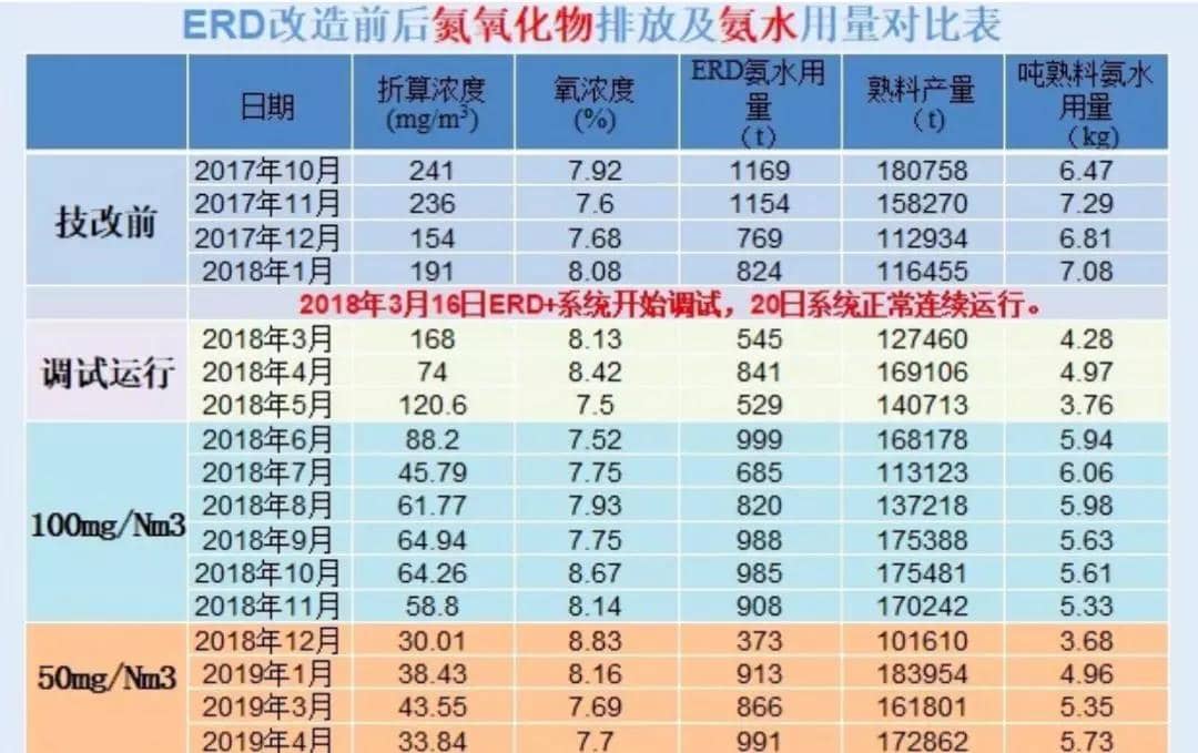 在利用現(xiàn)有SNCR噴氨設(shè)備的情況下,改造費(fèi)用只有普通SCR改造的1/20;而且不存在催化劑回收問(wèn)題、更不存在氨逃逸問(wèn)題;與SNCR控制200mg/Nm³相比,根據(jù)窯尾廢氣的NOx含量大小(800~1200 mg/Nm³),控制50 mg/Nm³以下的脫硝成本估計(jì)增加4~8元/t熟料。