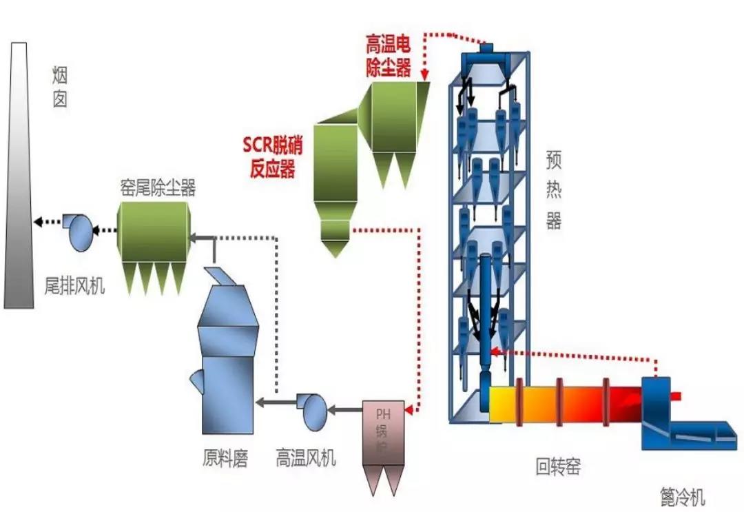 在水泥行業(yè)大致有三種路徑:① 高溫高塵,脫硝效率雖高,但易造成催化劑堵塞、中毒、磨損;② 中溫中塵,雖然對(duì)催化劑的堵塞、中毒、磨損有所緩解,但脫硝效率很難保證;③ 低溫低塵,雖然解決了催化劑的堵塞、中毒、磨損問(wèn)題,但脫離了催化劑的溫度窗口,需要加熱、運(yùn)行成本很高。