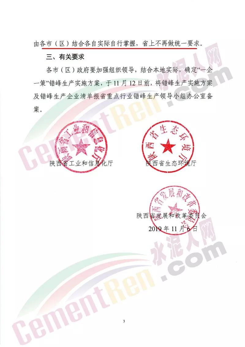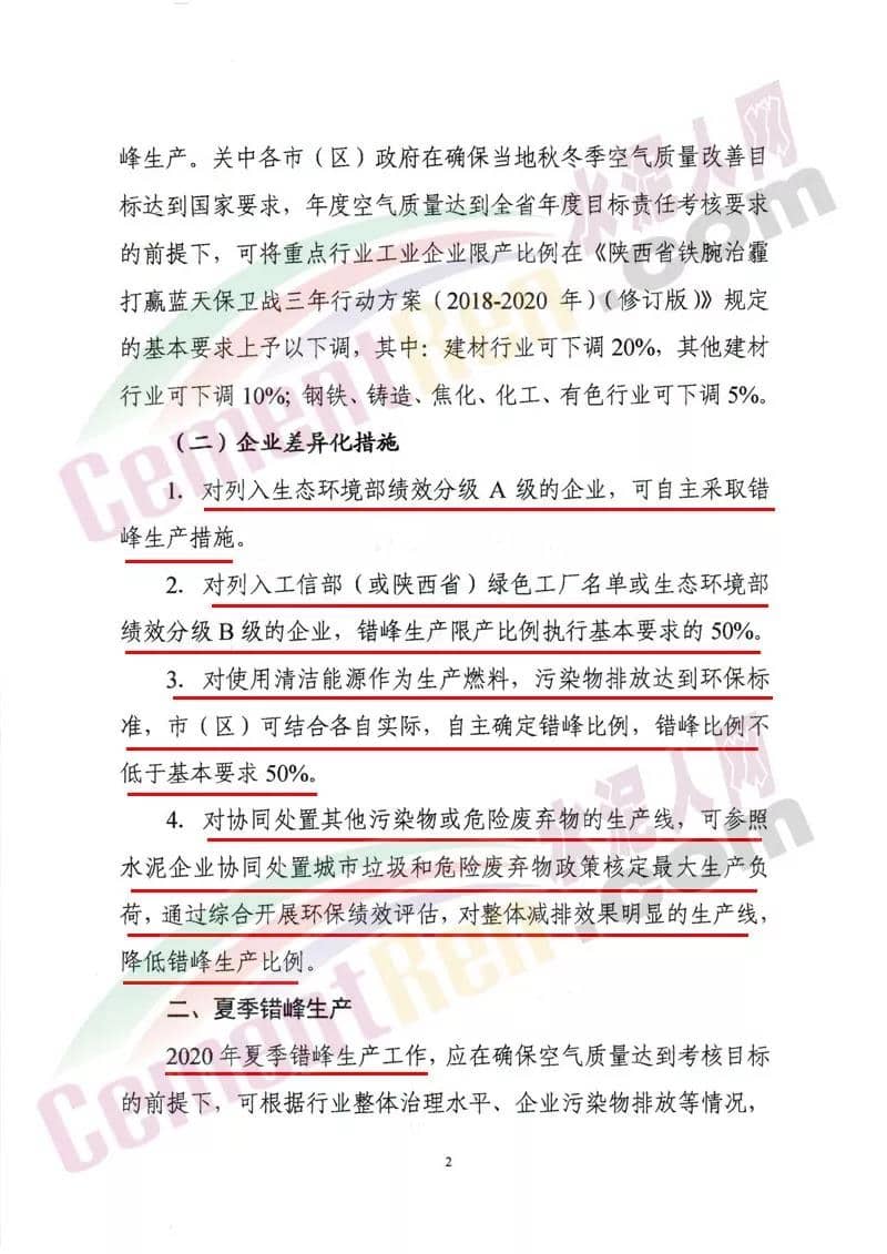 (一)對滿足環(huán)保排放要求且污染物排放總量小、對穩(wěn)增長、穩(wěn)就業(yè)、穩(wěn)外貿(mào)等影響大的生產(chǎn)工序,可適度減少錯峰?! ?二)對承擔供氣、供熱等民生任務的保障類企業(yè),可根據(jù)供氣、供熱需求優(yōu)化錯峰生產(chǎn)比例?! ?三)完成治理任務且列入工業(yè)和信息化部綠色工廠示范的企業(yè)、污染物排放達到超低排放標準(沒有超低排放標準的行業(yè),污染物排放低于行業(yè)特別排放限值20%以上)且物料運輸采用鐵路運輸或其他清潔運輸方式的企業(yè)(其中,焦化企業(yè)必須采取干法熄焦)、滿足生態(tài)環(huán)境部《關(guān)于加強重污染天氣應對夯實應急減排措施的指導意見》要求的A級企業(yè),可列入豁免清單,不參與錯峰?! ?四)對產(chǎn)業(yè)結(jié)構(gòu)指導目錄中限制類和環(huán)??冃Р畹囊岣咤e峰限產(chǎn)比例或?qū)嵤┩.a(chǎn)?! ?五)錯峰生產(chǎn)要與重污染天氣應急減排措施相銜接,保證重污染天氣應急減排需要,對于重污染天氣應急預警不可臨時中斷的生產(chǎn)線或生產(chǎn)工序,減排量可通過提前采取錯峰生產(chǎn)措施予以落實。各市要根據(jù)以上規(guī)定和錯峰生產(chǎn)重點領(lǐng)域進一步完善落實錯峰生產(chǎn)方案。 據(jù)水泥人網(wǎng)了解,山西區(qū)域多個城市此前都發(fā)布了錯峰生產(chǎn)計劃,要求轄區(qū)內(nèi)水泥企業(yè)從 2019年10月1日00時至2020年3月31日24時實施錯峰生產(chǎn)。水泥企業(yè)完成無組織治理和特別排放限值改造的限產(chǎn)50%,未完成的停產(chǎn)整治。附山西、陜西區(qū)域水泥熟料生企業(yè)名單: