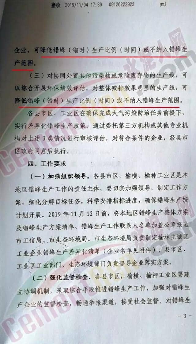 陜西榆林市錯峰生產(chǎn)文件如下: