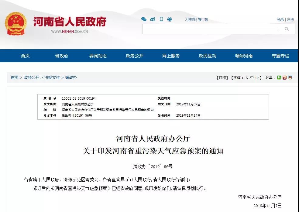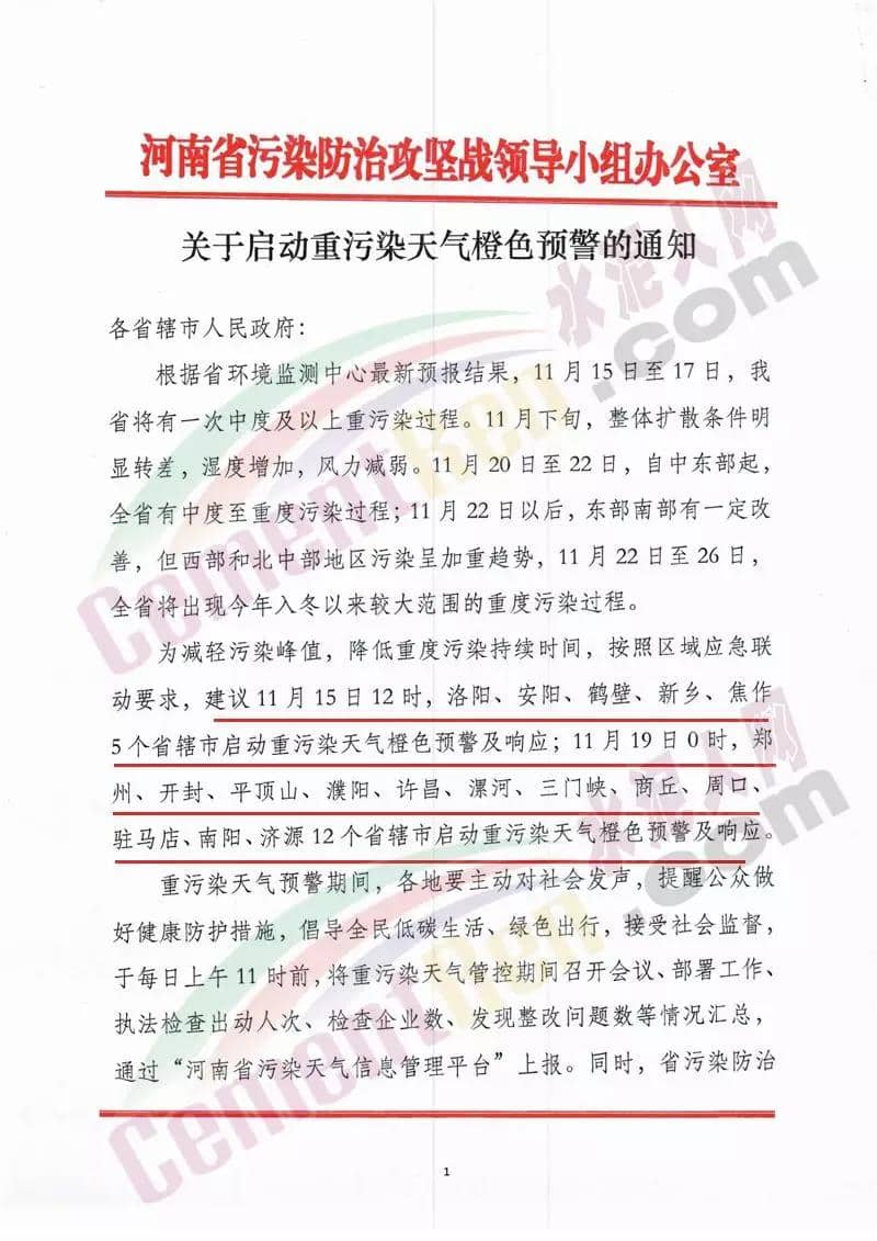據(jù)了解,昨日(11月14日),河南省人民政府發(fā)布《關(guān)于印發(fā)河南省重污染天氣應(yīng)急預(yù)案的通知》稱:當(dāng)預(yù)測(cè)可能出現(xiàn)上述重污染天氣時(shí),應(yīng)當(dāng)按空氣質(zhì)量預(yù)報(bào)結(jié)果上限確定預(yù)警級(jí)別。當(dāng)全省6個(gè)及以上相鄰的省轄市(濟(jì)源產(chǎn)城融合示范區(qū))同時(shí)達(dá)到橙色或紅色預(yù)警條件時(shí),啟動(dòng)該級(jí)別的省級(jí)預(yù)警。當(dāng)發(fā)布橙色預(yù)警時(shí),啟動(dòng)Ⅱ級(jí)應(yīng)急響應(yīng)。根據(jù)減排需要,在橙色及以上預(yù)警期間采取統(tǒng)一應(yīng)急減排措施。對(duì)新興產(chǎn)業(yè)、戰(zhàn)略性產(chǎn)業(yè)和保障民生的企業(yè),應(yīng)當(dāng)根據(jù)實(shí)際情況采取減排措施,盡量避免對(duì)正常生產(chǎn)生活的影響。對(duì)承擔(dān)協(xié)同處置城市生活垃圾或危險(xiǎn)廢物、涉及居民供暖等民生保障類企業(yè),在保障任務(wù)完成的同時(shí),核定最大允許生產(chǎn)負(fù)荷,實(shí)施“以量定產(chǎn)”或“以熱定產(chǎn)”。