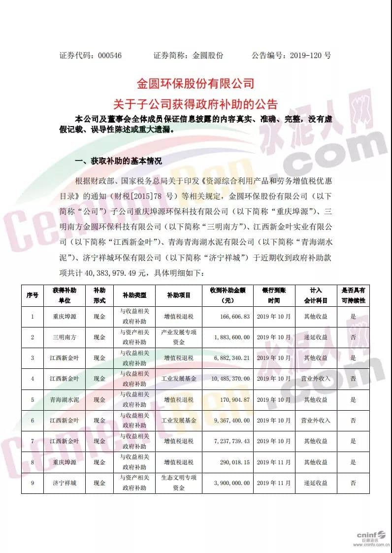 這四項(xiàng)補(bǔ)貼項(xiàng)目共40,383,979.49 元,其中工業(yè)發(fā)展基金共10579044.00元,增值稅退稅共14747609.49元,生態(tài)文明專項(xiàng)資金共3900000元,產(chǎn)業(yè)發(fā)展專項(xiàng)資金共1883600元。具體明細(xì)如下: