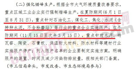 河北省水泥企業(yè)錯(cuò)峰停限產(chǎn)天數(shù)185天