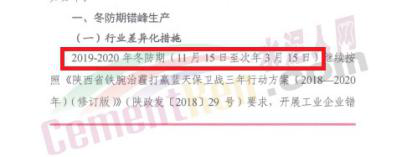 陜西省水泥企業(yè)錯(cuò)峰停限產(chǎn)天數(shù)183天
