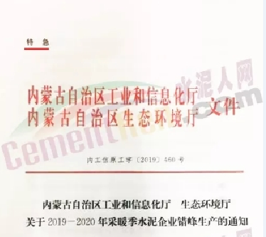 2019年內(nèi)蒙古自治區(qū)水泥企業(yè)錯(cuò)峰停產(chǎn)時(shí)間為天120天,采暖季錯(cuò)峰時(shí)間分兩階段1月至3月15日,時(shí)間75天,11月15至12月,時(shí)間45天。