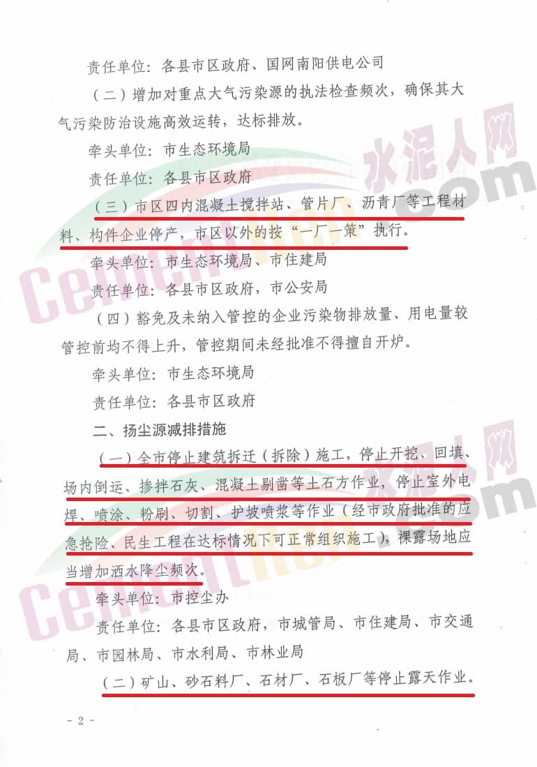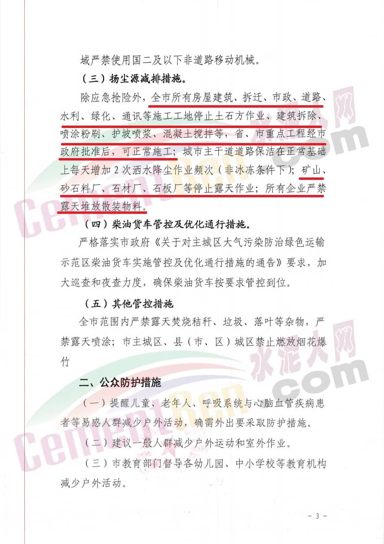 除應(yīng)急搶險外,全市所有房屋建筑、拆遷、市政、道路、水利、綠化、通訊等施工工地停止石方作業(yè)、建筑拆除、噴漆涂刷、護坡噴漿、混凝土攪拌等;礦山、砂石料廠、石材廠、石板廠等露天作業(yè);所有企業(yè)嚴(yán)禁露天堆放散裝物料。具體如下: