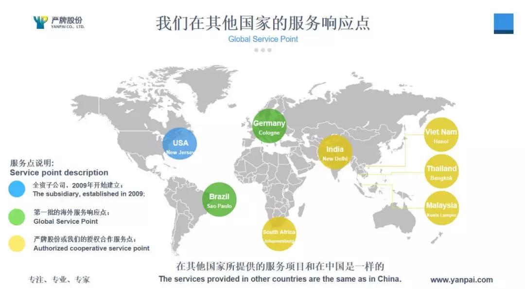 ▲全球服務(wù)響應(yīng) 據(jù)水泥人網(wǎng)了解,嚴牌股份自20世紀90年代開始構(gòu)建全球過濾材料供需體系,著力于與全球優(yōu)秀的過濾生產(chǎn)商合作。逐步在德國,意大利,美國等老牌濾料生產(chǎn)基地找到了可靠的合作伙伴。在有序的競爭和交流環(huán)境中,嚴牌股份逐步在全球過濾市場占有一席之地。