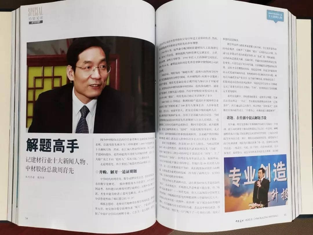 11月中旬,63歲的企業(yè)家宋志平卸任中國建材集團(tuán)董事長的消息“刷爆朋友圈”。同時,人們也對接棒者周育先產(chǎn)生了好奇。不少讀者聯(lián)系本刊編輯部,詢問關(guān)于他的情況。周育先曾在建材行業(yè)耕耘27載,擔(dān)任過中非人工晶體研究院院長、中國中材集團(tuán)副總經(jīng)理、中材股份有限公司總裁。2010年12月調(diào)入被稱為“國投二號”的國新控股擔(dān)任重要職務(wù)。10年前,周育先作為中材集團(tuán)內(nèi)部重組的成功實施者,憑借在應(yīng)對金融危機(jī)中的出色表現(xiàn)和帶領(lǐng)中材股份完成優(yōu)異的經(jīng)營業(yè)績,被《中國建材》評為2009年度建材行業(yè)十大新聞人物。下面就讓我們通過刊載于《中國建材》2010年第3期的人物通訊《解題高手——記建材行業(yè)十大新聞人物、 中材股份總裁周育先》,以及2011年第5期的人物速寫《儒雅睿智的央企老總周育先》,來了解一下這位低調(diào)、儒雅、睿智,有著豐富“并購”“重組”經(jīng)驗的管理者曾經(jīng)的“人生軌跡”——