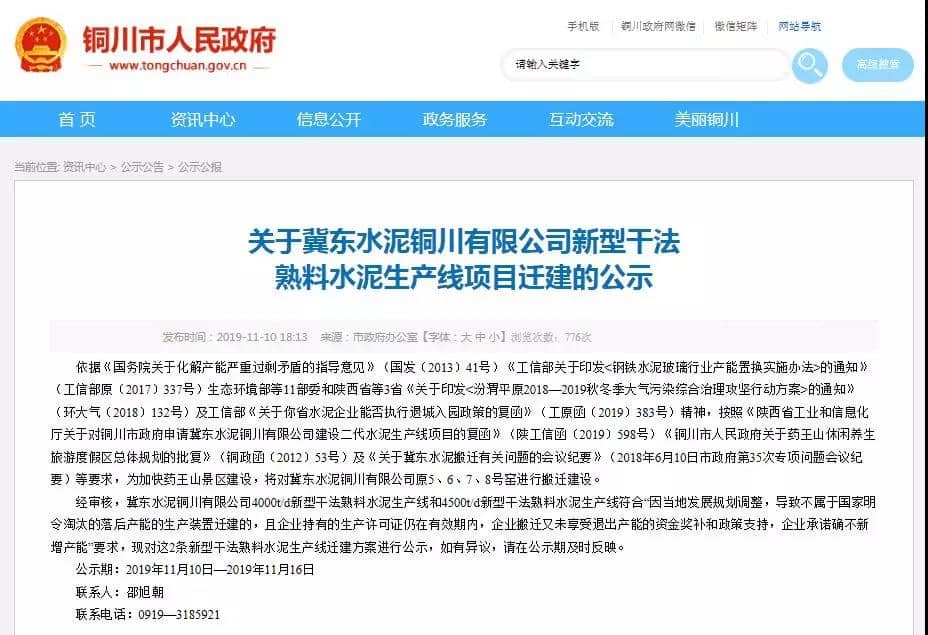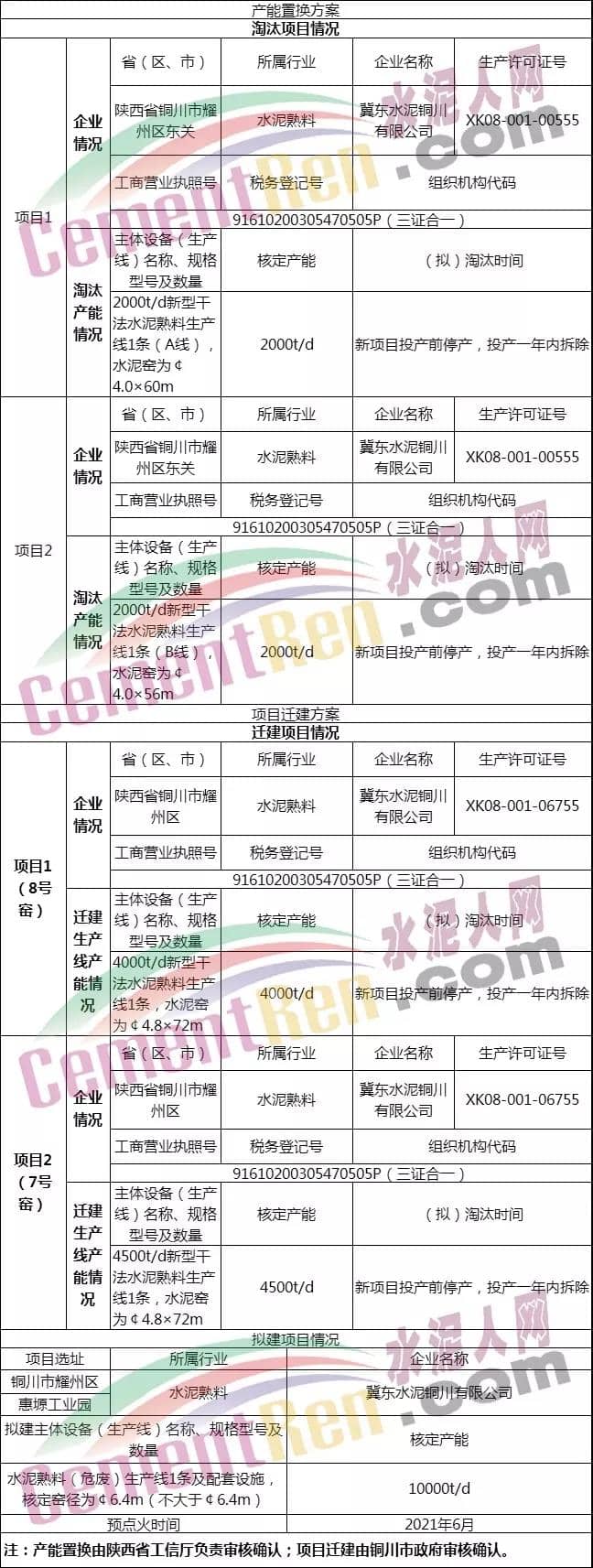按照《陜西省工業(yè)和信息化廳關(guān)于調(diào)整冀東水泥銅川有限公司產(chǎn)能置換方案的函》(陜工信函〔2019〕664號)要求,將冀東水泥銅川有限公司新型干法熟料水泥生產(chǎn)線項(xiàng)目遷建方案公告如下: