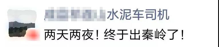 11月26下午14時(shí)左右,某水泥運(yùn)費(fèi)司機(jī)發(fā)朋友圈稱(chēng),兩天兩夜終于出了秦嶺。
