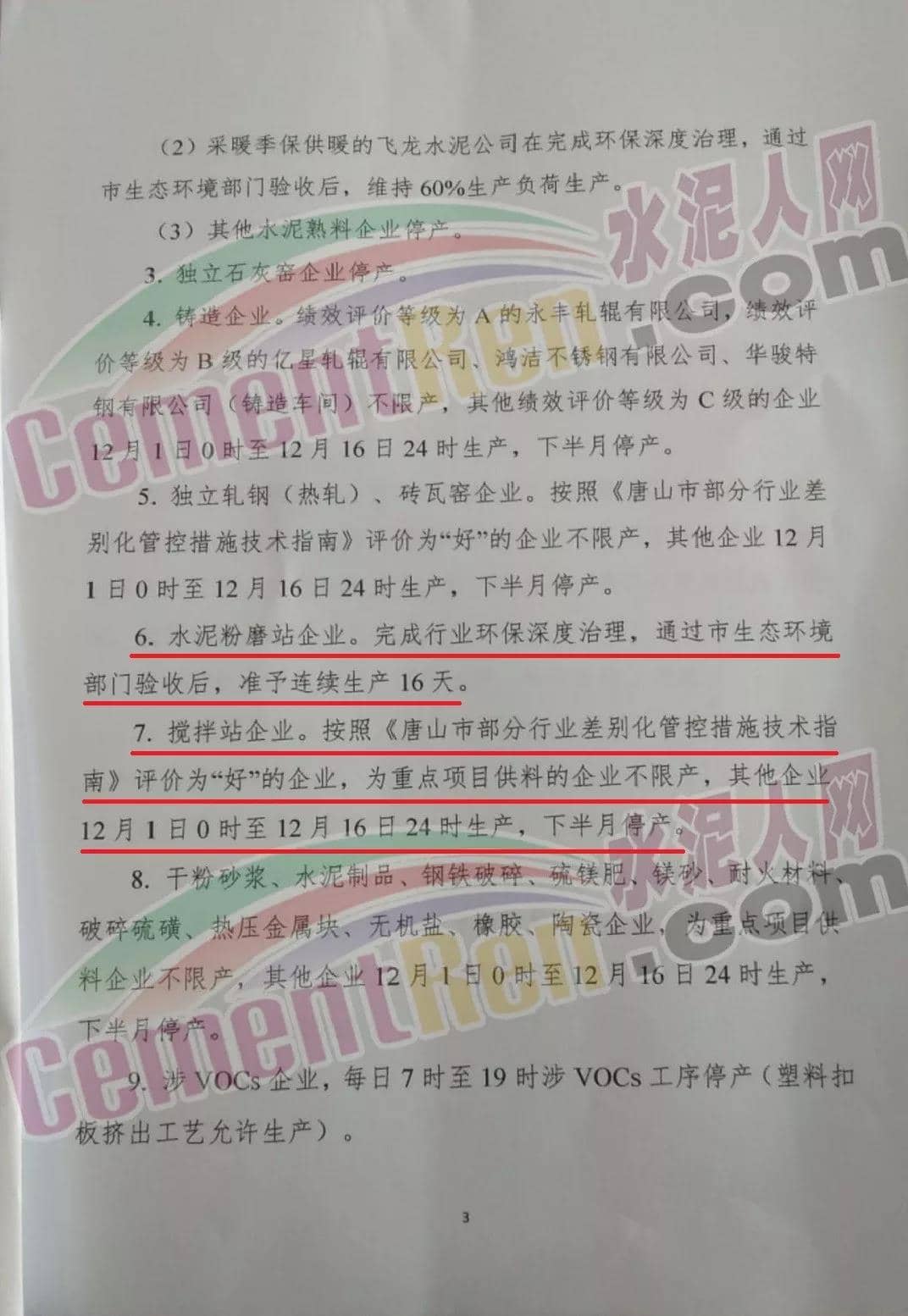 (4) 其他水泥企業(yè),限產比例不低于50%。