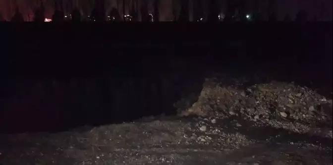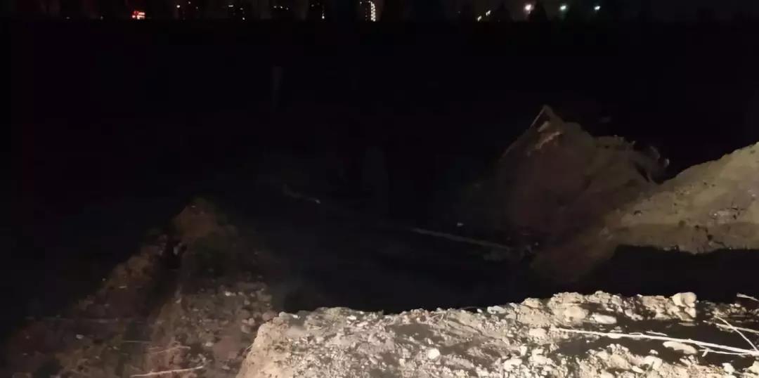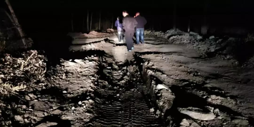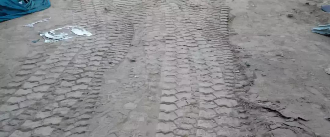 現(xiàn)場(chǎng)道路碾壓痕跡,夜間拍攝