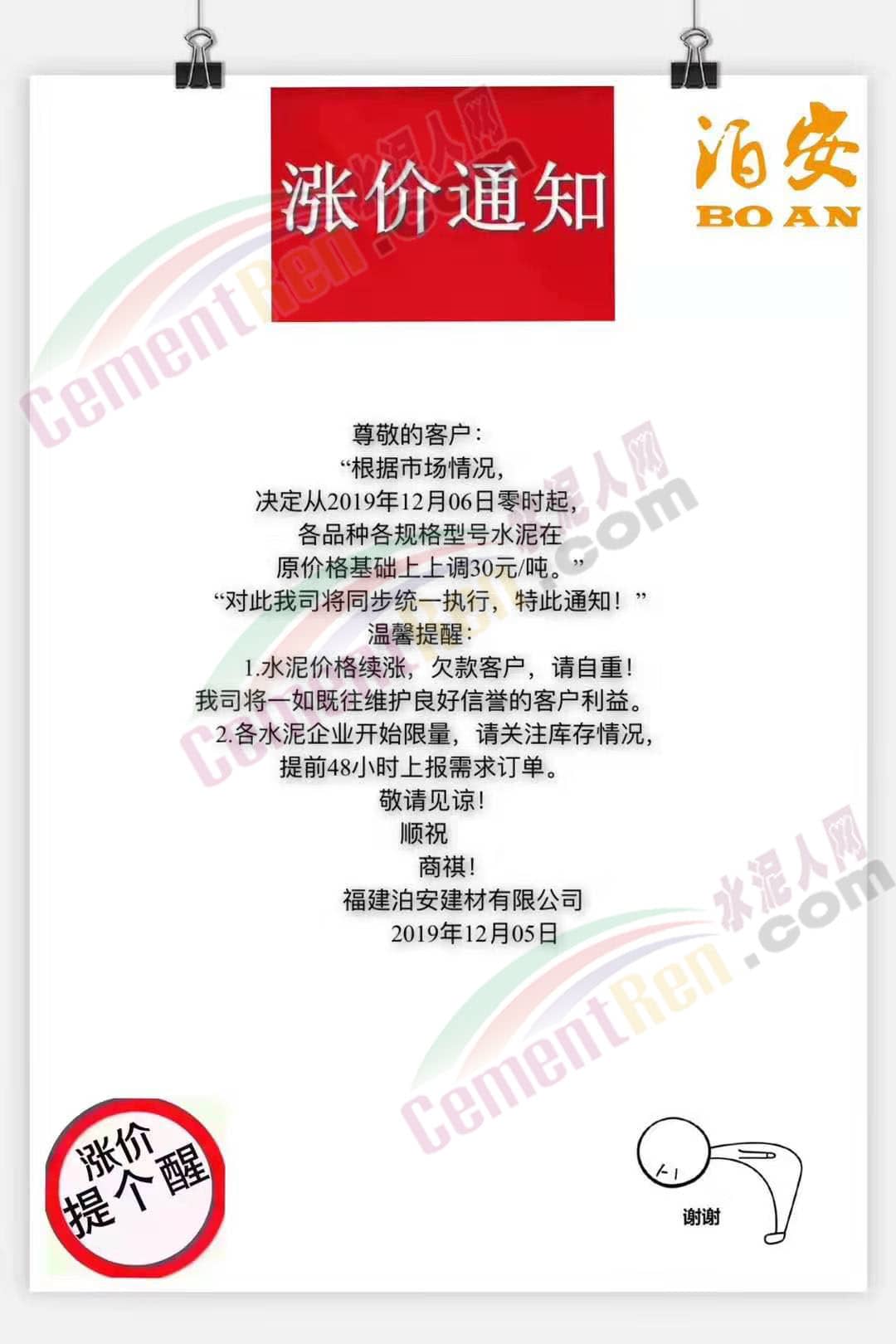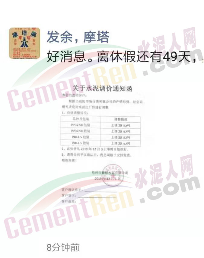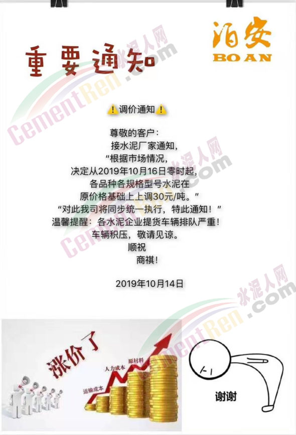 水泥企業(yè)漲價通知
