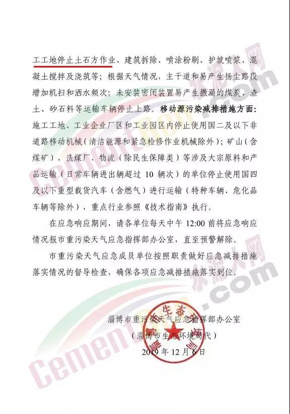 按照《濰坊市重污染天氣應(yīng)急預(yù)案》相關(guān)要求,Ⅱ級應(yīng)急響應(yīng)啟動后,工業(yè)企業(yè)要按照最新修訂的應(yīng)急減排清單采取限產(chǎn)停產(chǎn)等減排措施;建筑工地等揚塵源停止產(chǎn)生揚塵環(huán)節(jié)的建筑施工作業(yè)及渣土運輸;加強重型柴油貨車管控措施,最大限度減少上路運輸行駛。 泰安市根據(jù)空氣質(zhì)量狀況,山東泰安市重污染天氣應(yīng)急工作小組決定,自2019年12月5日20時起 ,在泰山區(qū),岱岳區(qū)滿莊鎮(zhèn)、大汶口鎮(zhèn)、天平街道、粥店街道,新泰市樓德鎮(zhèn),寧陽縣磁窯鎮(zhèn)、華豐鎮(zhèn),高新區(qū)范圍內(nèi)發(fā)布重污染天氣橙色預(yù)警,自2019年12月6日12時起 ,啟動Ⅱ級應(yīng)急響應(yīng)。
