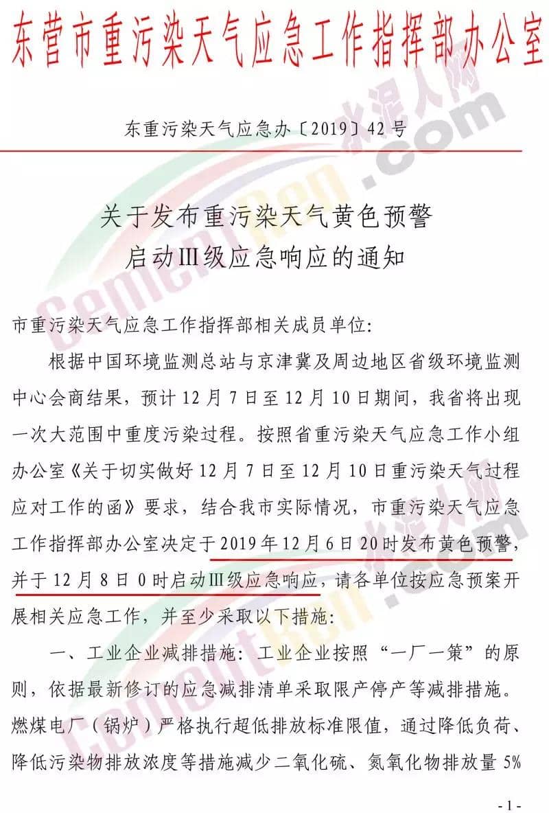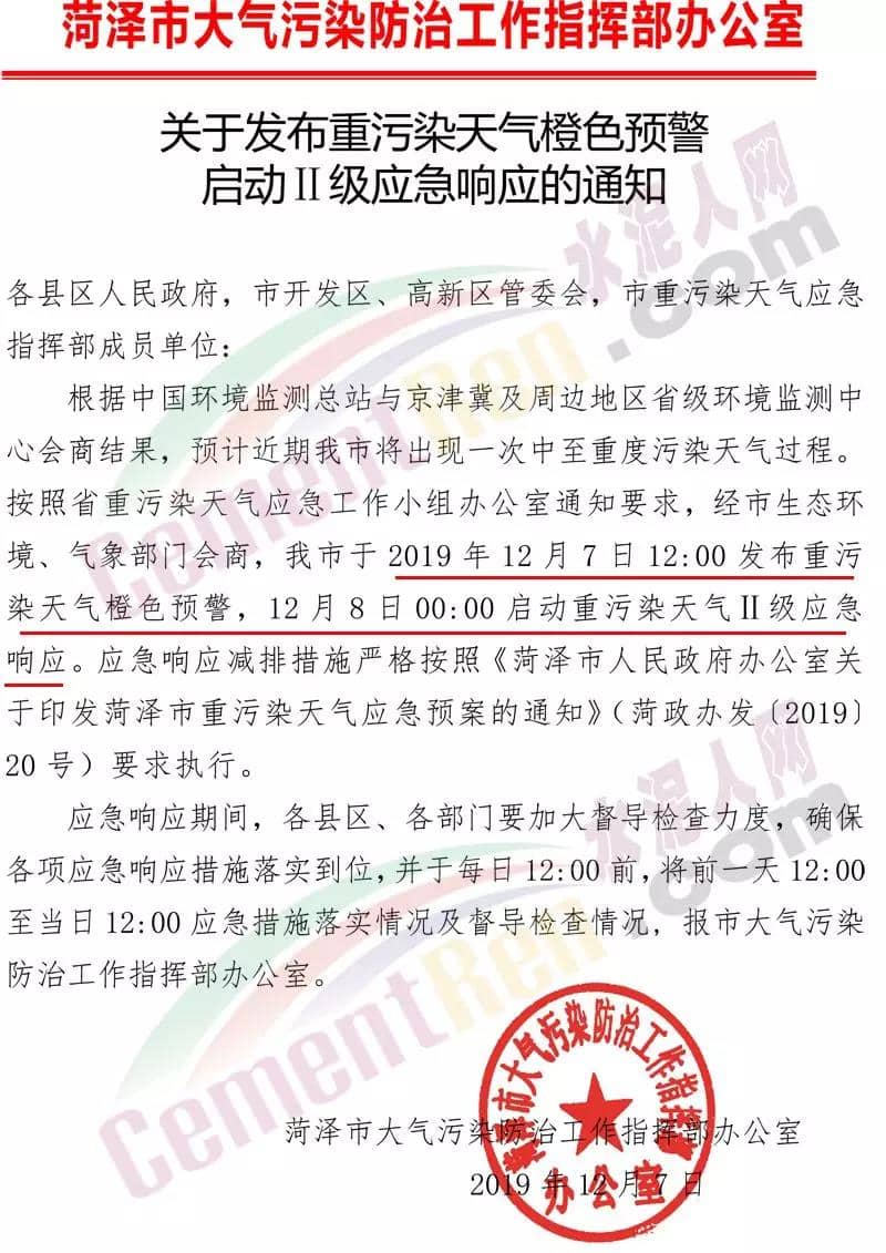 日前,水泥大省山東省濟(jì)寧市、荷澤市、東營(yíng)市等區(qū)域發(fā)布重污染預(yù)警,同時(shí)啟動(dòng)應(yīng)急響應(yīng)措施。