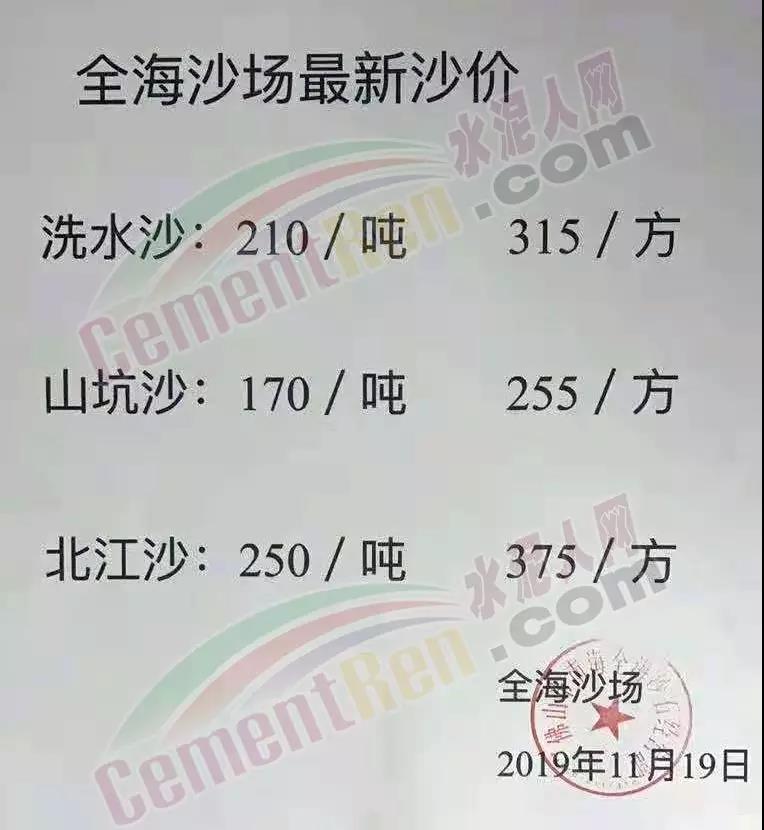 同期沙廠給出了最新的沙價。其中北江沙價格達(dá)到375元/方。