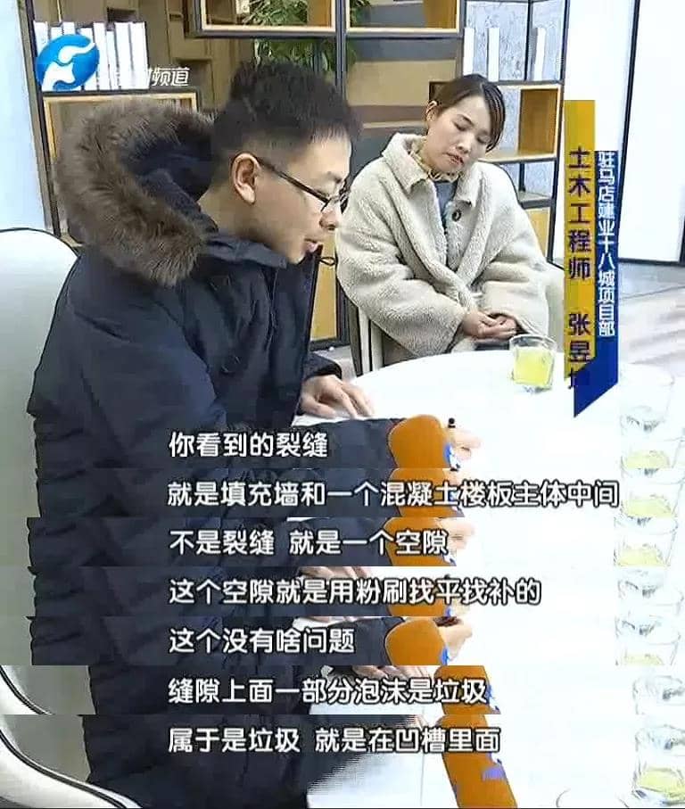 原來?xiàng)钕壬诮环恐蟀l(fā)現(xiàn)房子里面有空鼓的現(xiàn)象,便讓維修人員把空鼓的地方敲了之后發(fā)現(xiàn)飄窗板上面墻邊的地方有裂縫,縫隙里面都是泡沫。