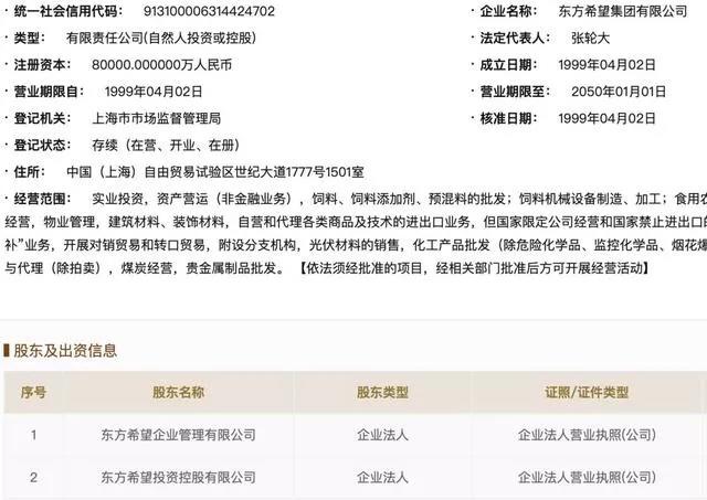 12月9日,記者自工商信息獲悉,東方希望集團有限公司(以下簡稱“東方希望”)法定代表人出現(xiàn)變更,此前公司法定代表人為劉永行,目前已變更為張輪大。此外,張輪大也是東方希望的董事長。
