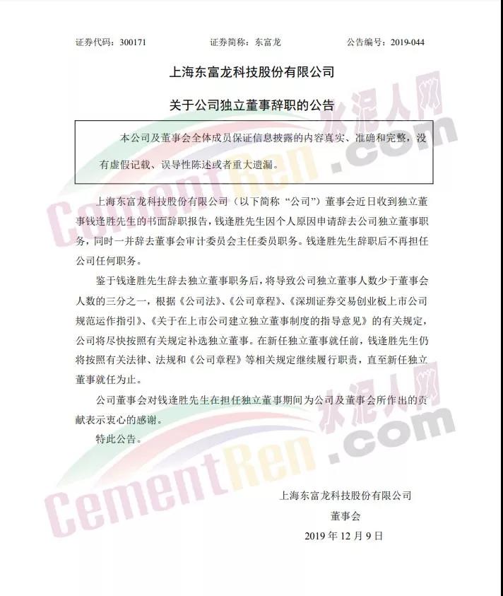東富龍董事會(huì)則稱,錢逢勝因個(gè)人原因申請(qǐng)辭去公司獨(dú)立董事職務(wù),同時(shí)一并辭去董事會(huì)審計(jì)委員會(huì)主任委員職務(wù)。