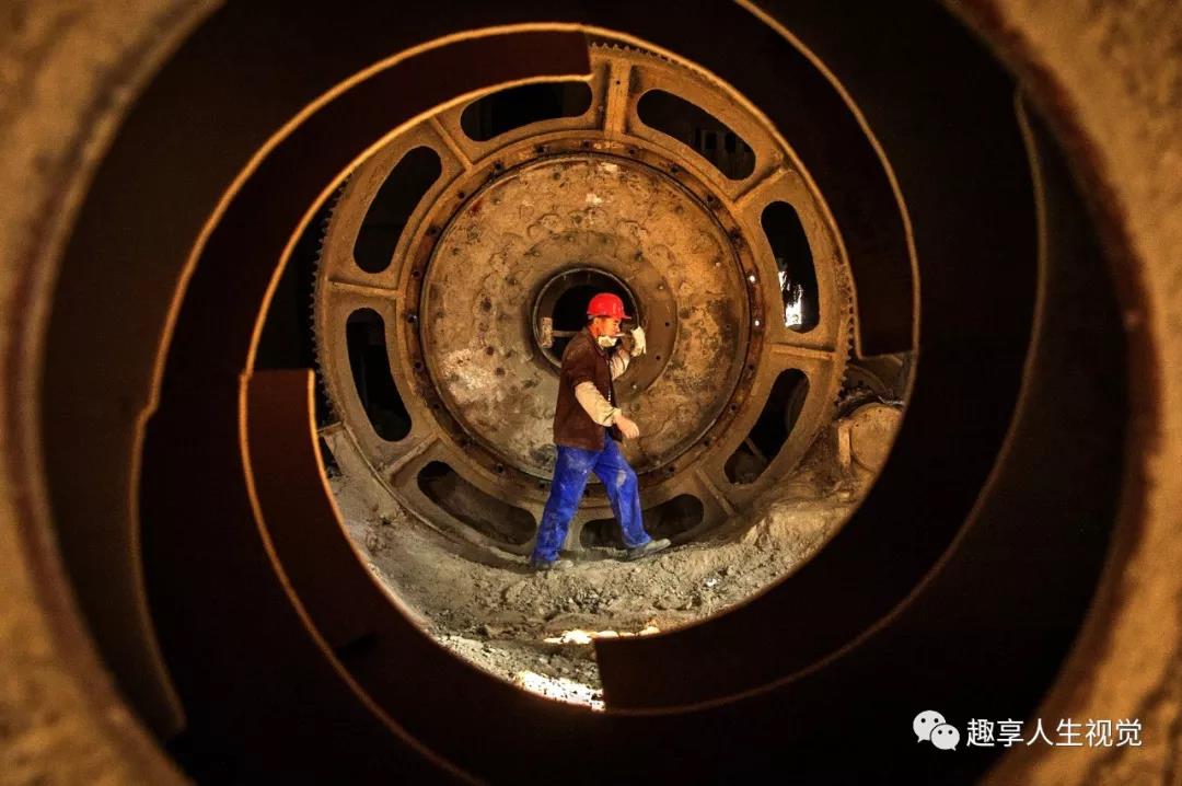 2019年2月24日常德南方水泥,球磨機維修工李傳軍在球磨機與回轉(zhuǎn)窯聯(lián)接處拆裝。