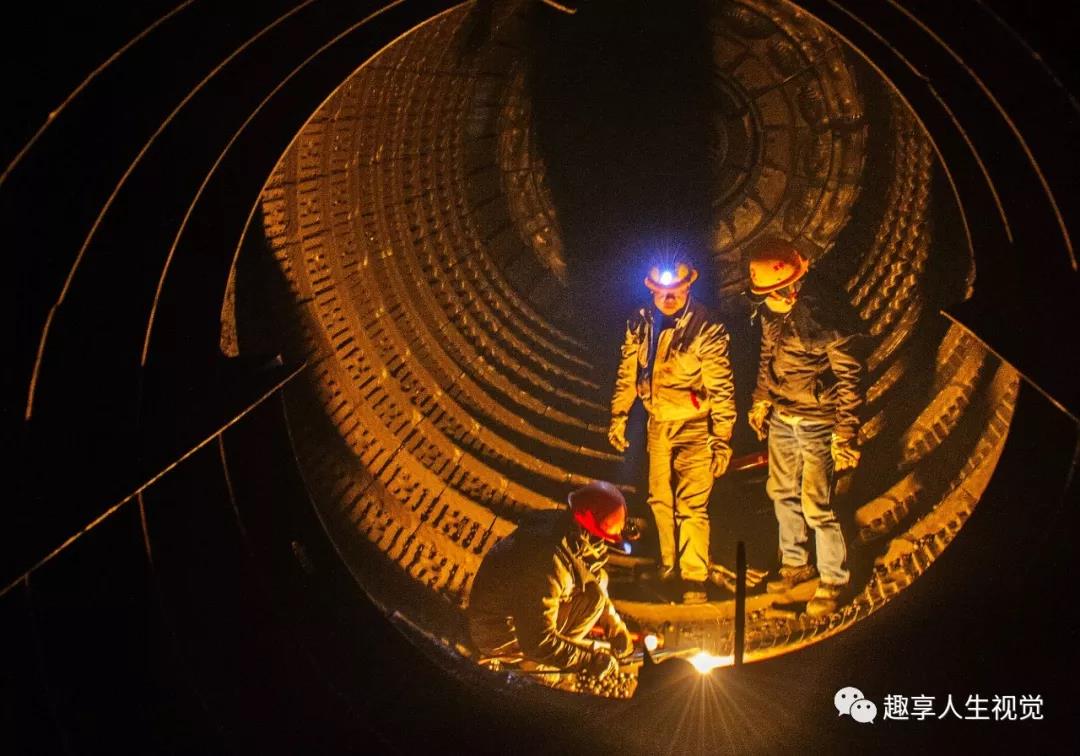 2019年2月14日常德南方水泥,工段長郭學(xué)松在磨機內(nèi)對焊接處進行檢測。