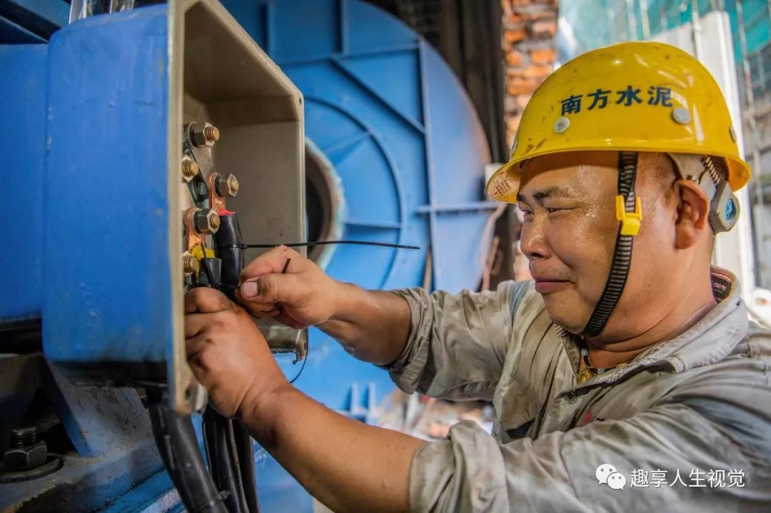 2019年7月16日常德南方水泥,電工楊勇在為檢修完畢的燃煤球磨機接通電源。
