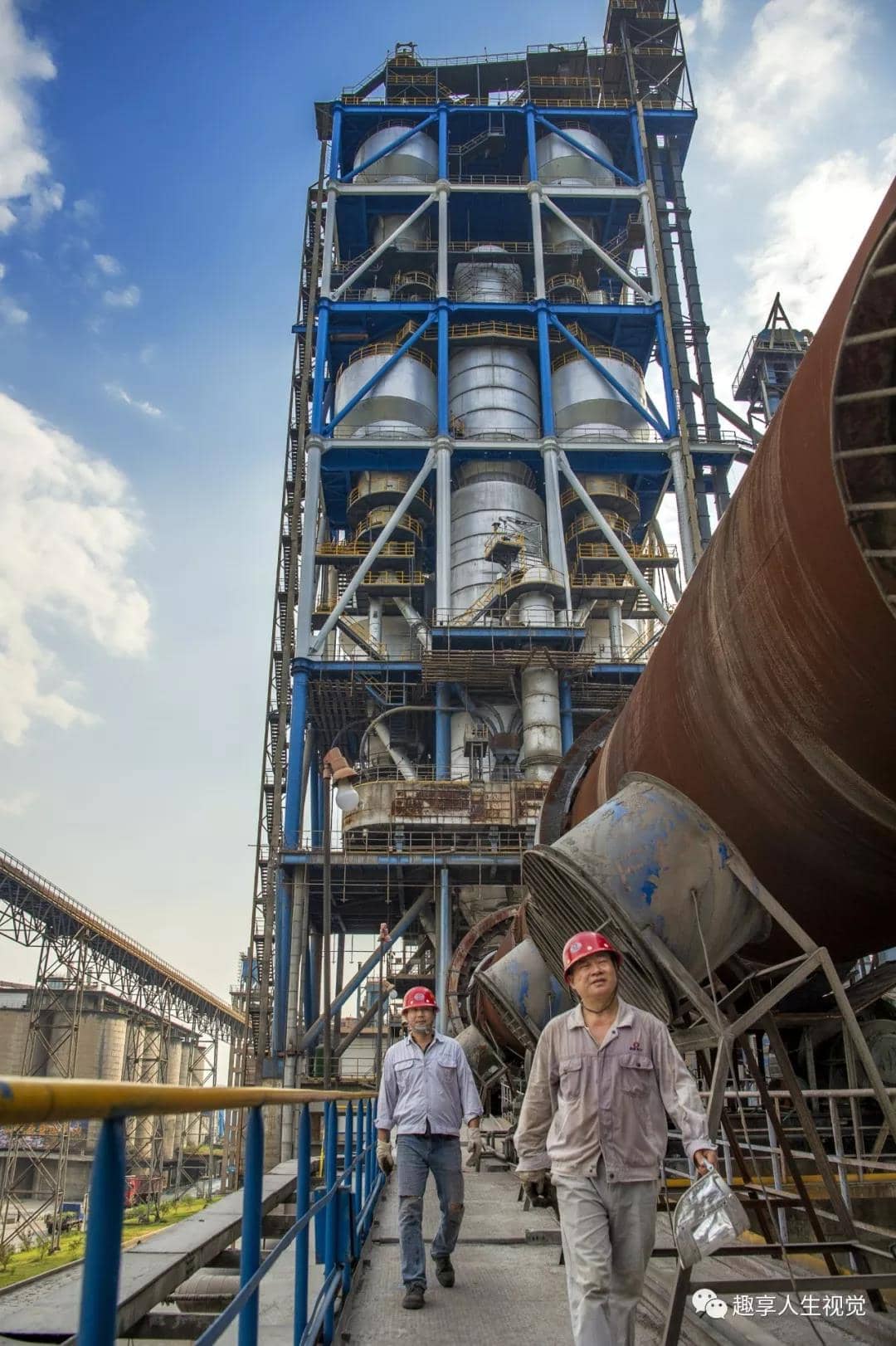 2019年8月16日韶峰南方水泥,窯爐巡檢工萬應(yīng)喬、蔣君義在回轉(zhuǎn)窯巡查窯爐運行情況。